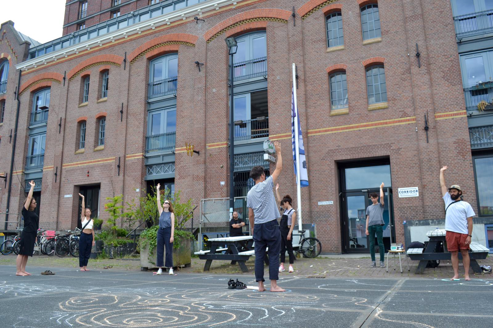 Gestures are series of on going actions for relation and extension between the body and the land. They can be carried out individually or in groups. There is a guided introduction and comittment throughout their duration. The gesture pictured above (antenna) was performed in exhibitions in Amsterdam and Olso during June 2020. They have been inserted and practiced in different contexts since.