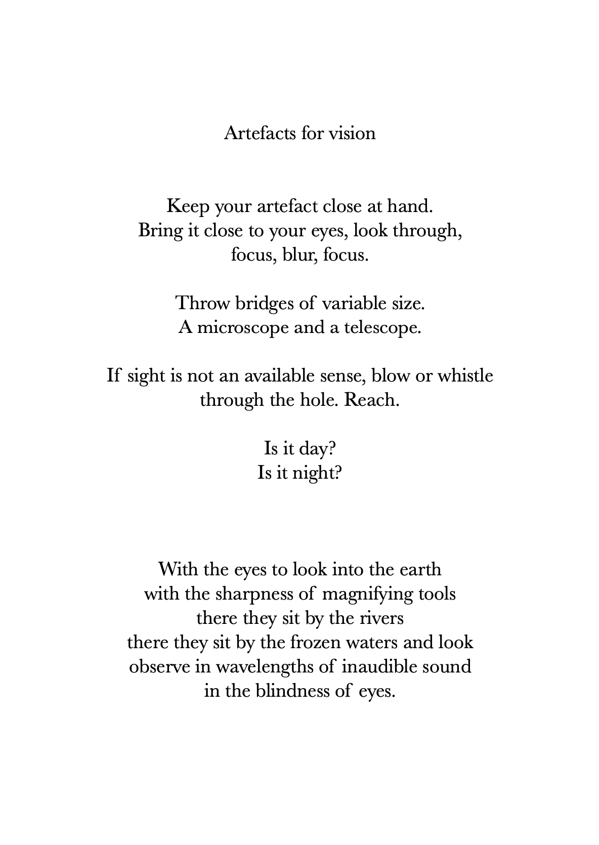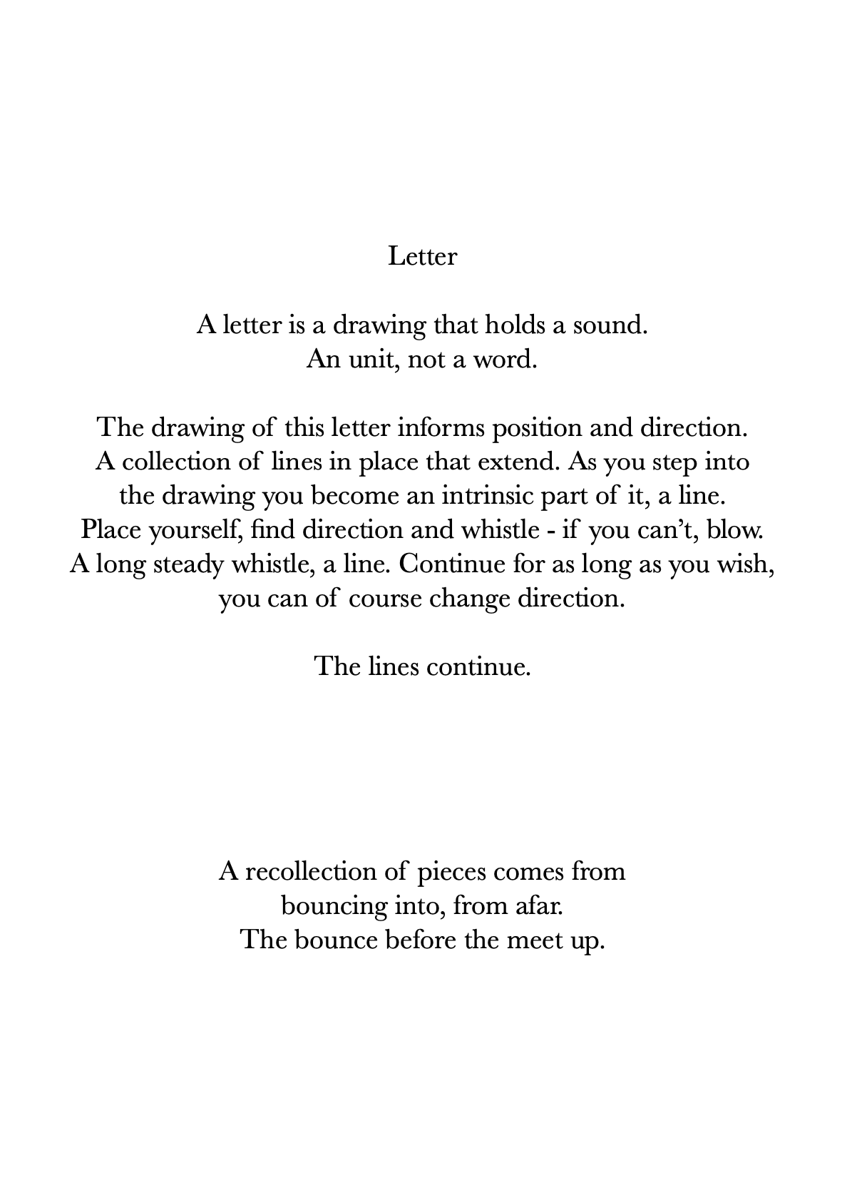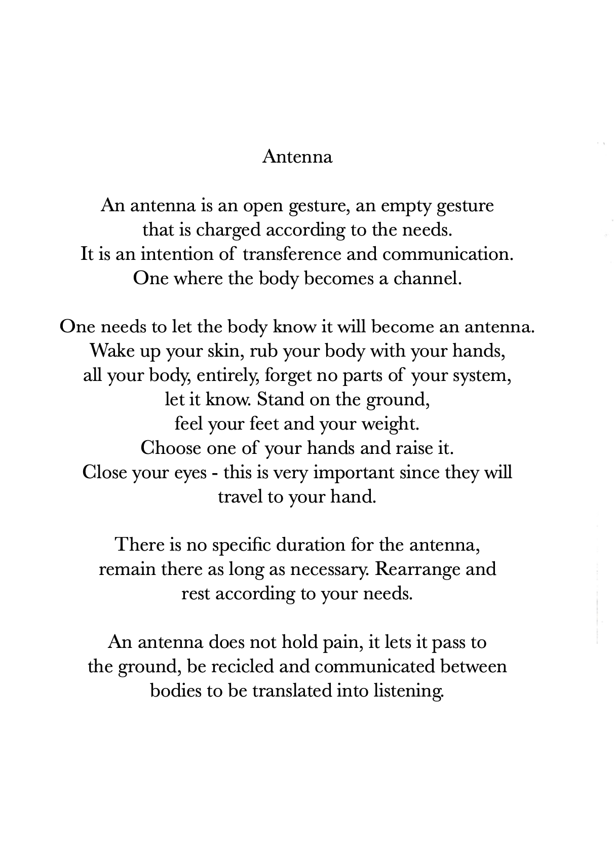 This small collection of gestures is an invintation. They are not to be confused by instructions. These are propositions for relation, suggestions, ready to receive something from you, to be transformed and moved on.